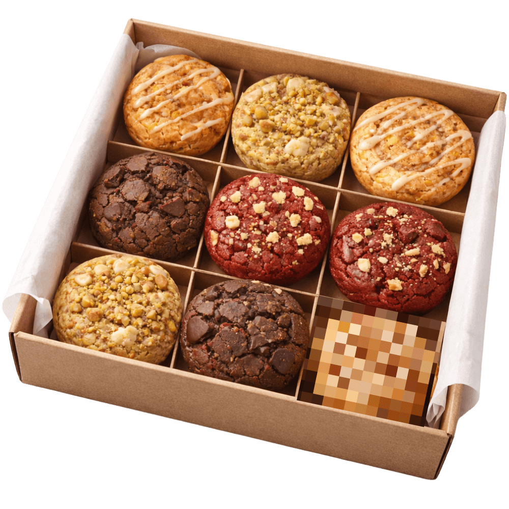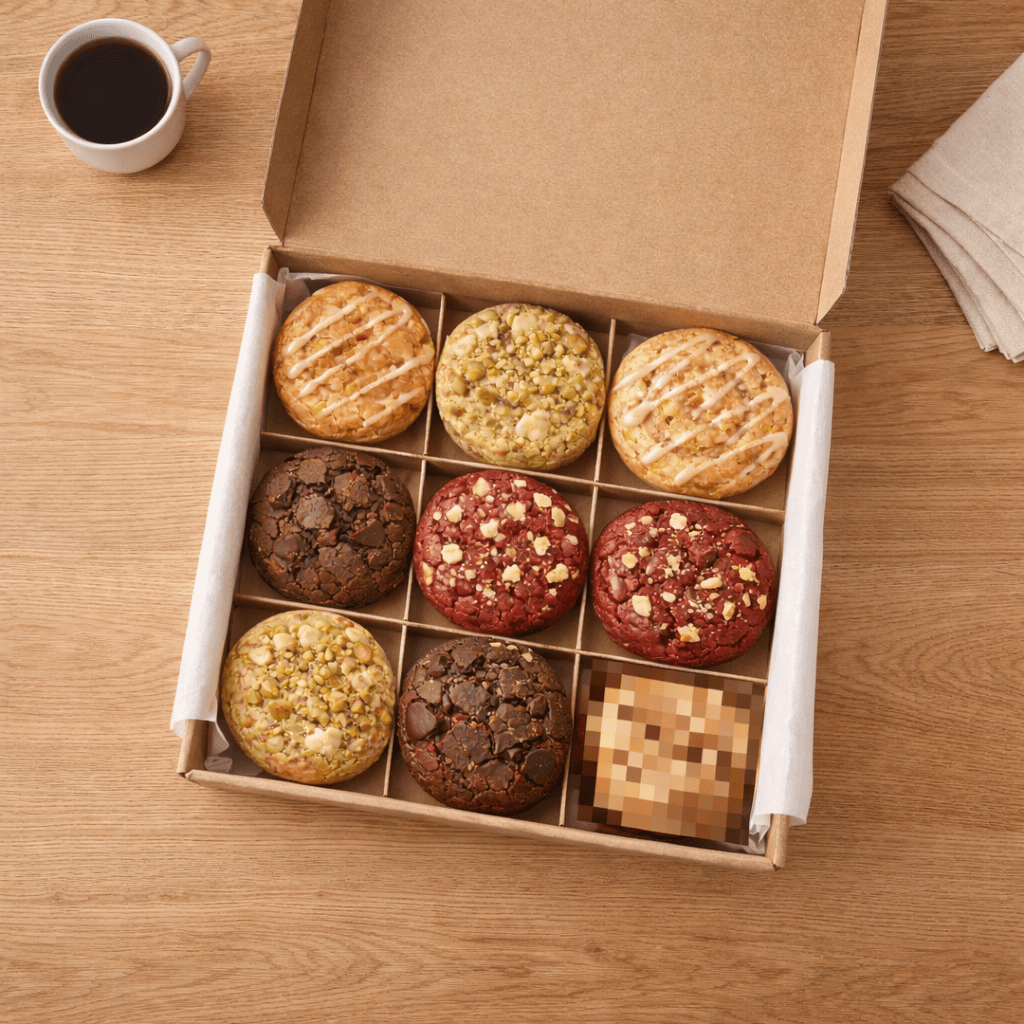Du kaufst nicht „eine Schachtel Kekse“. Du kaufst neun schwere, von Hand verarbeitete Dessert‑Schwergewichte: